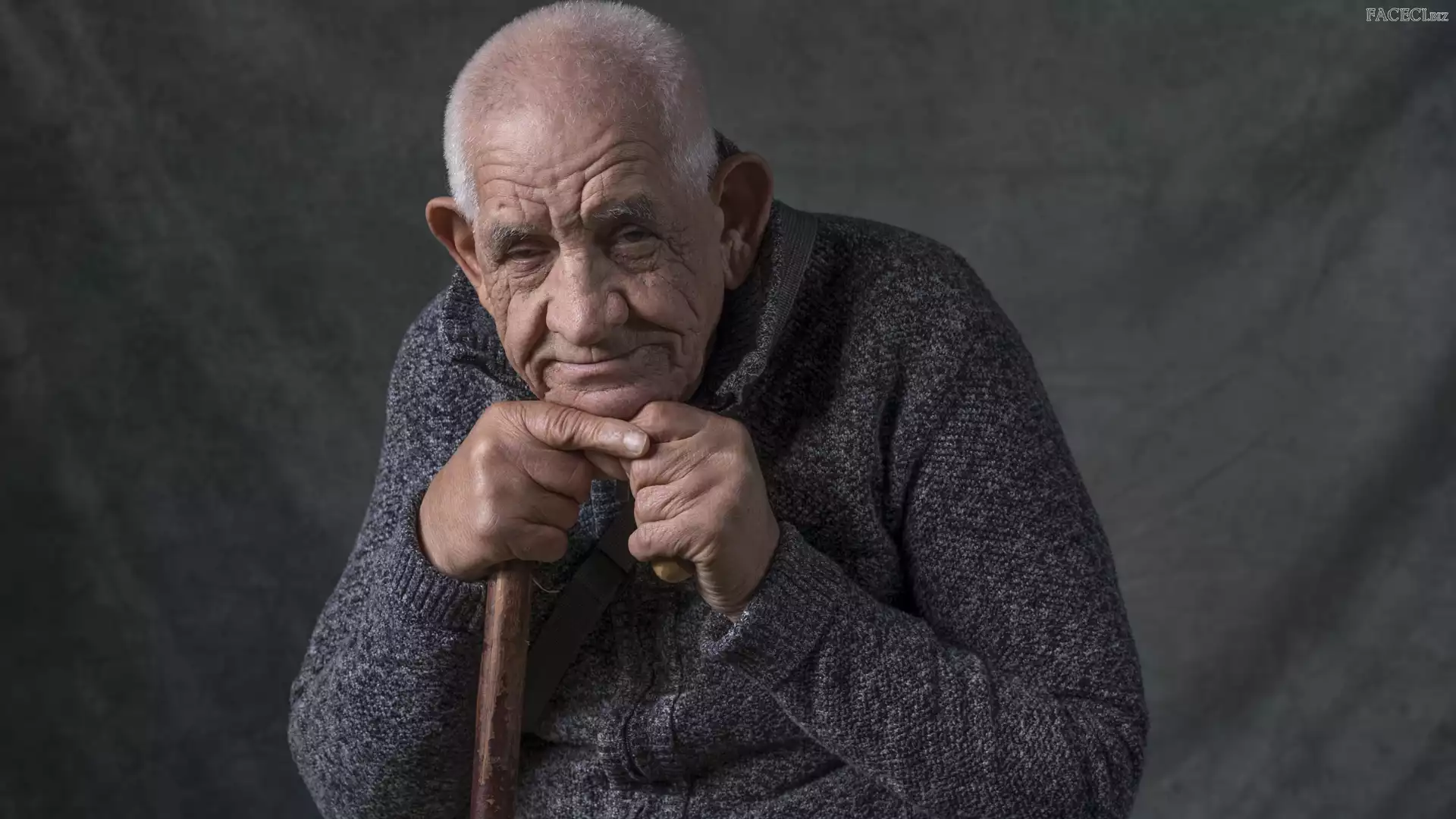 Dziadek, Laska, Mężczyzna, Sweter - faceci.biz